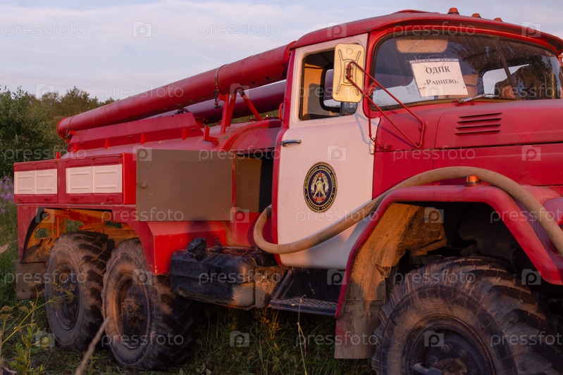 На место прибыли сотрудники пожарной службы. Пожарная машина на месте пожара. Пожар в деревне. Горят деревянные дома в селе. На месте предприятия промышленности работают сотрудники пожарной службы. Пожарная машина на месте пожара. Пожар в деревне. Горящие