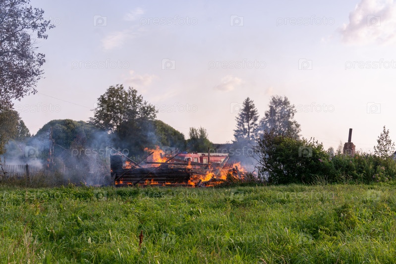 Пожар в деревне. Горят деревянные дома в селе Ранцево Тверской области. Огонь в деревне. Горящие деревянные дома в селе Ранцево, Тверская область