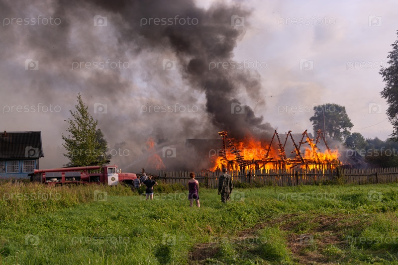 Пожар в деревне. Горят деревянные дома в селе Ранцево Тверской области. Огонь в деревне. Горящие деревянные дома в селе Ранцево, Тверская область