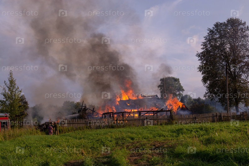 Пожар в деревне. Горят деревянные дома в селе Ранцево Тверской области. Огонь в деревне. Горящие деревянные дома в селе Ранцево, Тверская область