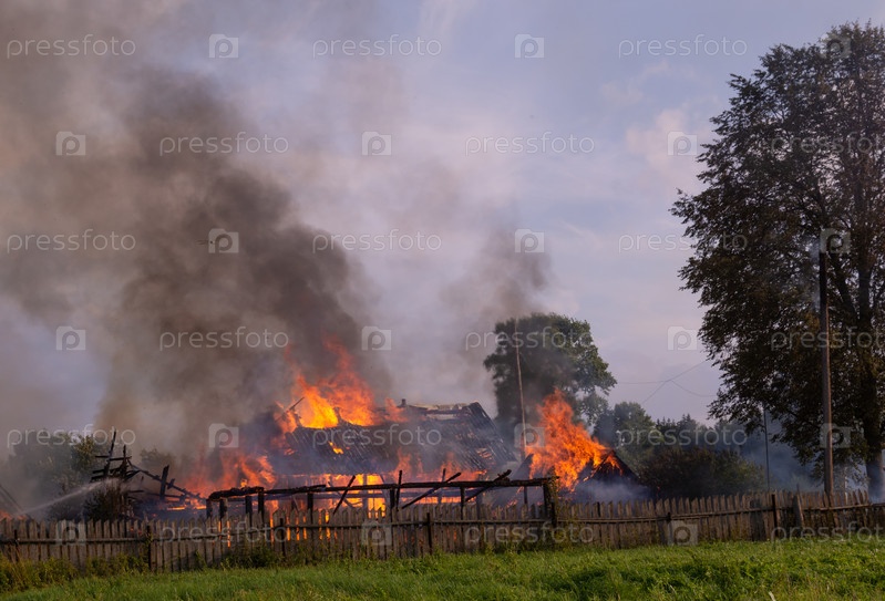 Пожар в деревне. Горят деревянные дома в селе Ранцево Тверской области. Огонь в деревне. Горящие деревянные дома в селе Ранцево, Тверская область