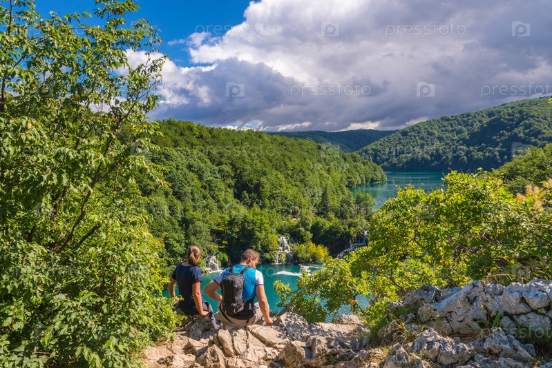 Мальчик и девочка смотрят на Плитвицкие озера. Хорватия