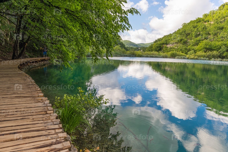 Вид на отражение в озере Калудеровац. Национальный парк Плитвицкие озера, Хорватия