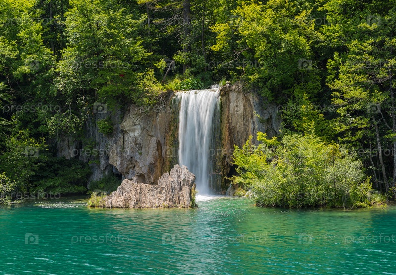 Красивый водопад на Плитвицких озерах. Национальный парк Плитвицкие озера, Хорватия