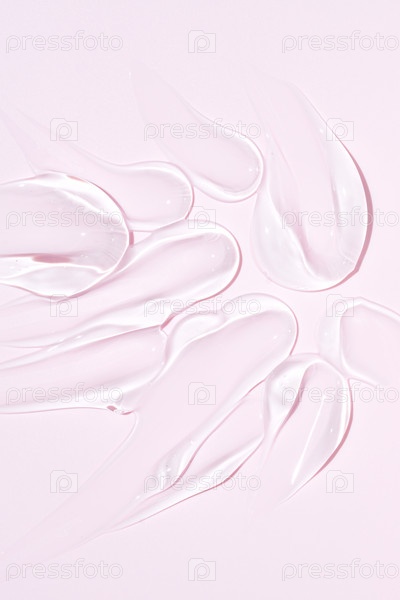 Сжатая косметическая прозрачная текстура кремового геля изолирована на розовом фоне. Закрыть прозрачный мазок сыворотки