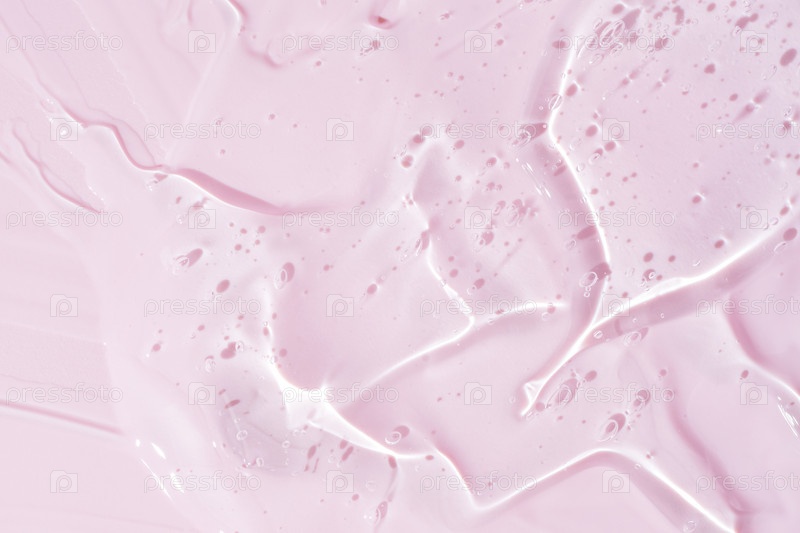 Прозрачная текстура жидкой гелевой сыворотки. Макияж и косметика текстурируют розовый фон, средства по уходу за кожей и косметический крем