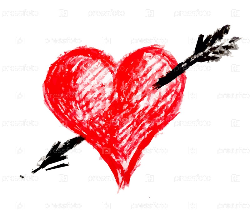 Сердце со стрелой нарисованное пастелью