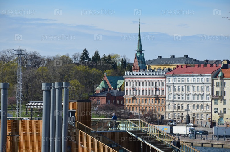 Улица Хельсинки весной, историческая застройка, северный модерн