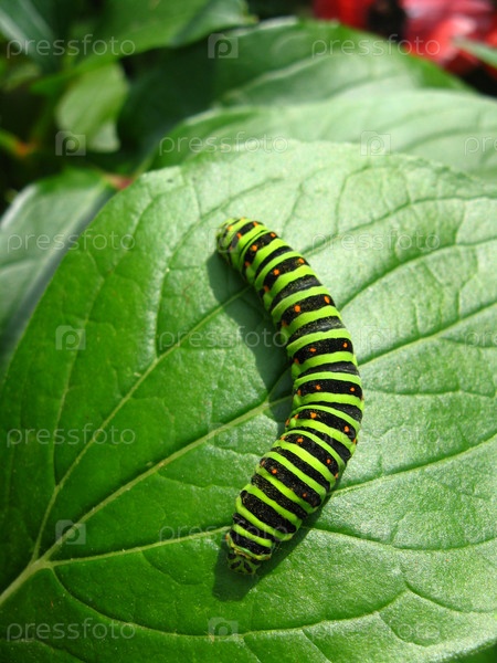 Гусеница бабочки махаон на лисе