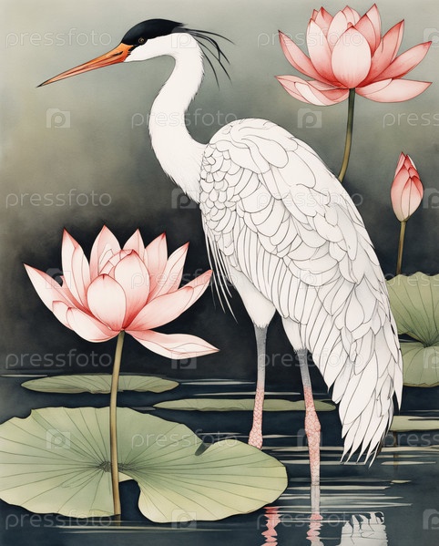 Аист акварельная иллюстрация