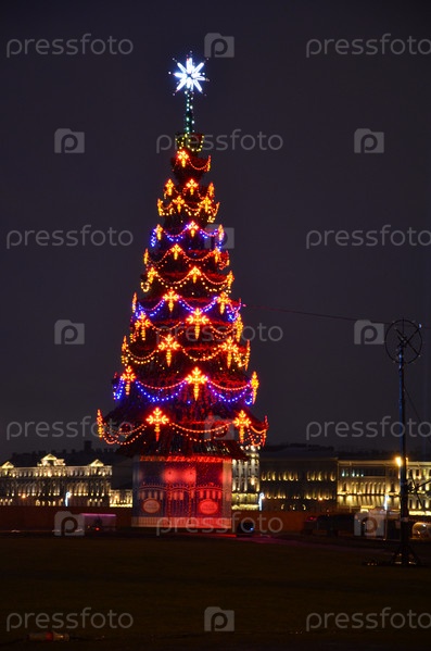 Новогодняя ель на набережной в Санкт-Петербурге