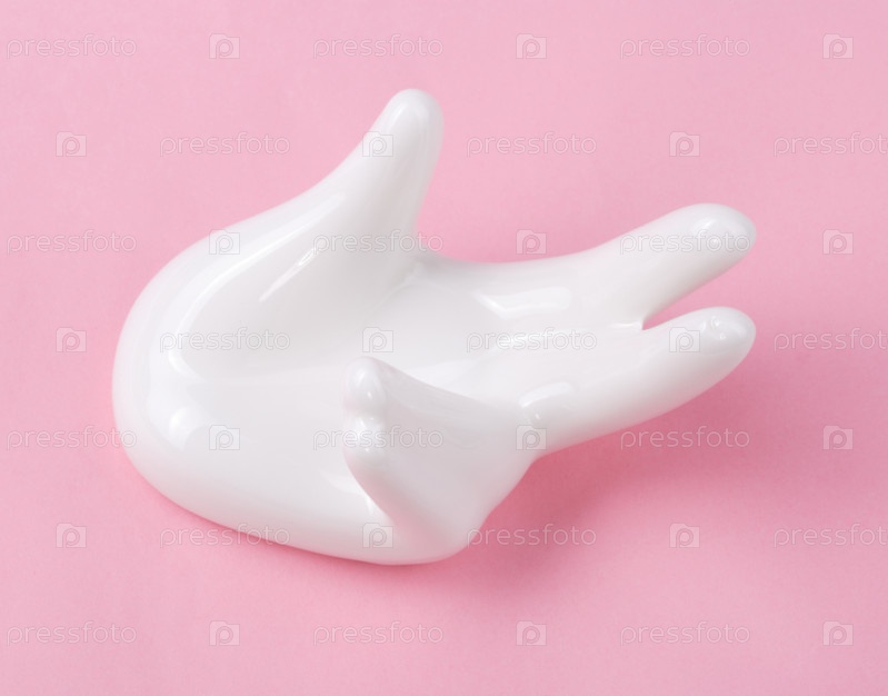 Керамическая подставка в форме руки на розовом фоне