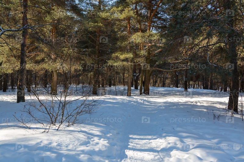Зимний пейзаж с соснами