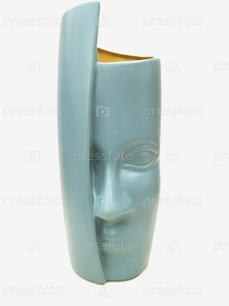 Ваза нежного цвета на белом фоне в форме человеческого лица
