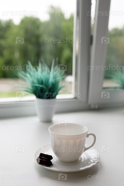 Чашка утреннего кофе на подоконнике