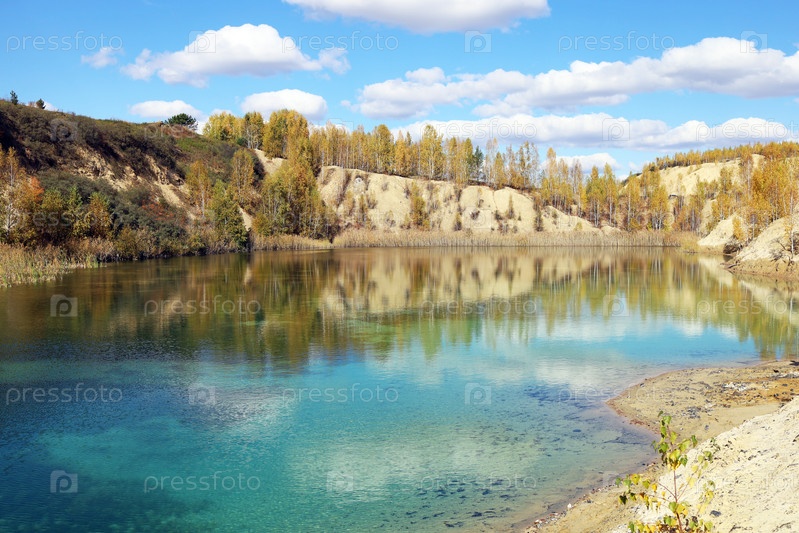 Красивый осенний пейзаж голубого озера