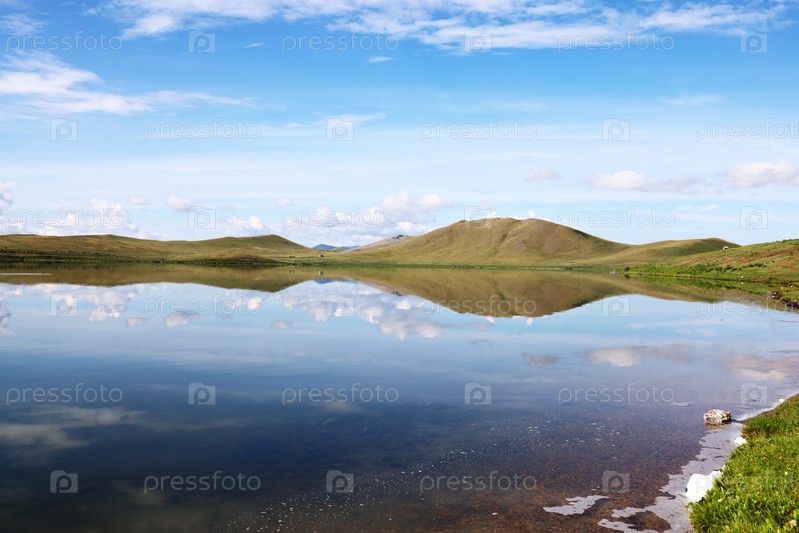 Спокойное отражение озера в солнечный день