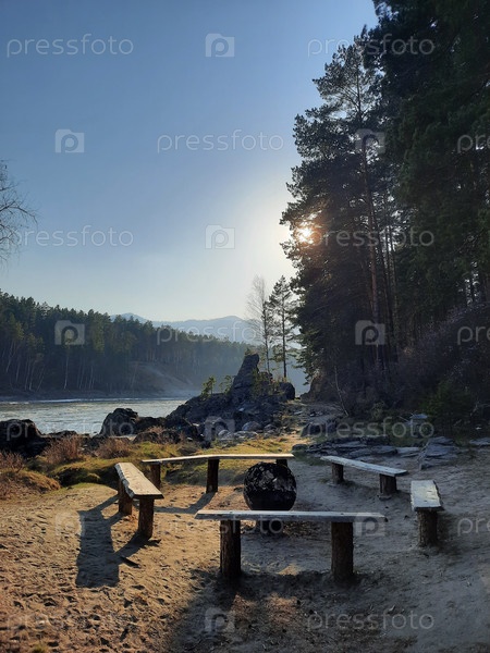 Россия. пляж на реке Катунь. горный Алтай, село Узнезя, май 2023 г