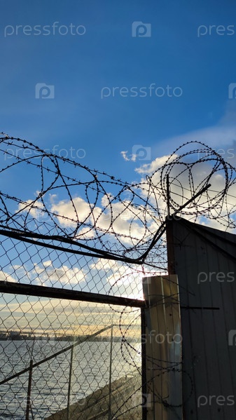 Колючая проволока и железный забор