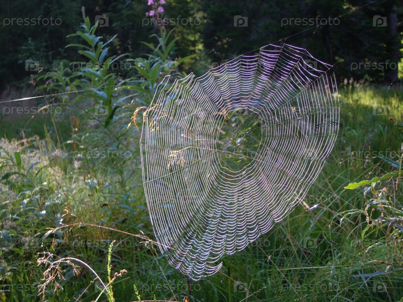 Паутина в летнем лесу солнечным утром