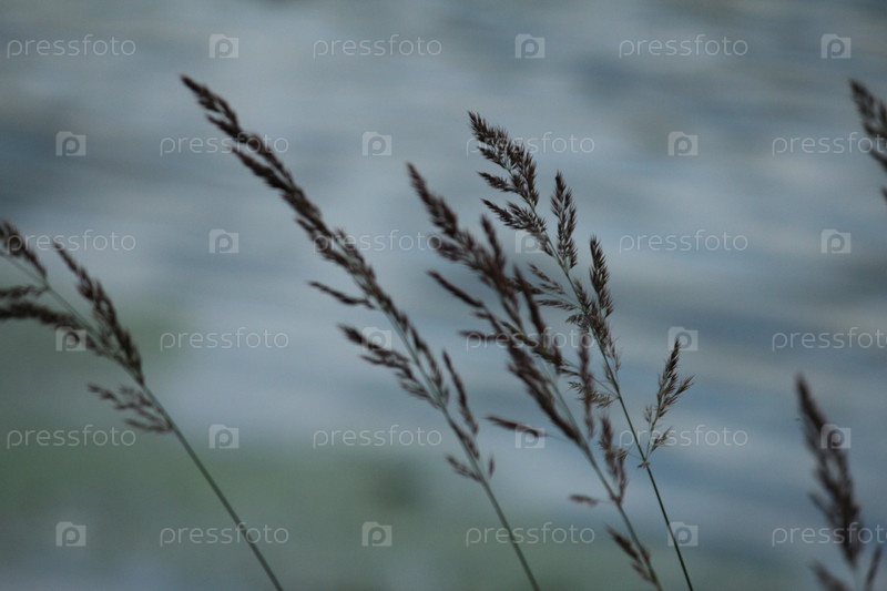 Колосья травы на ветру на берегу реки