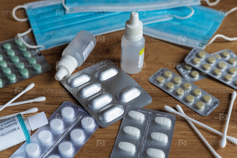 Различные лекарства, таблетки на столе