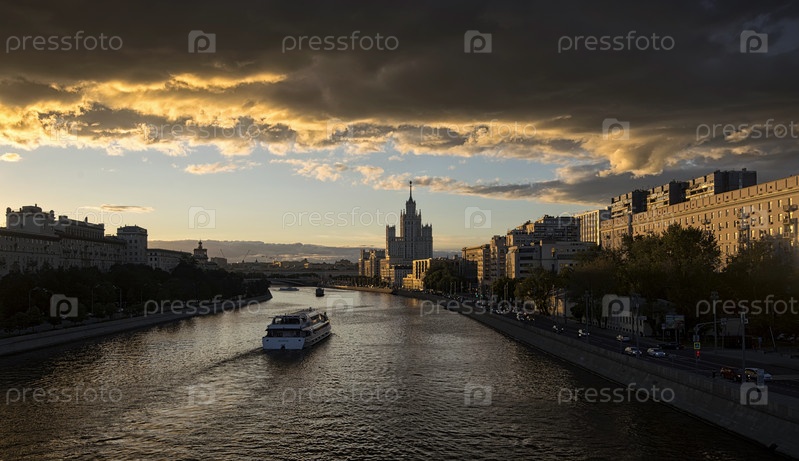 Ночная Москва. Вид на высотку на Котельнической набережной с Большого Краснохолмского моста