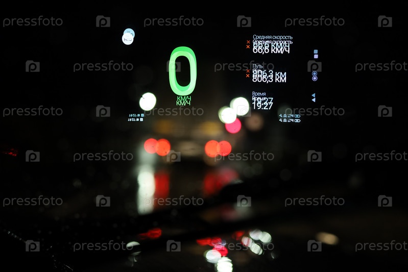 Проекция навигатора на лобовое стекло автомобиля ночью