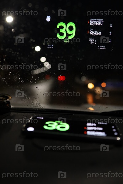 Проекция навигатора на лобовое стекло автомобиля ночью