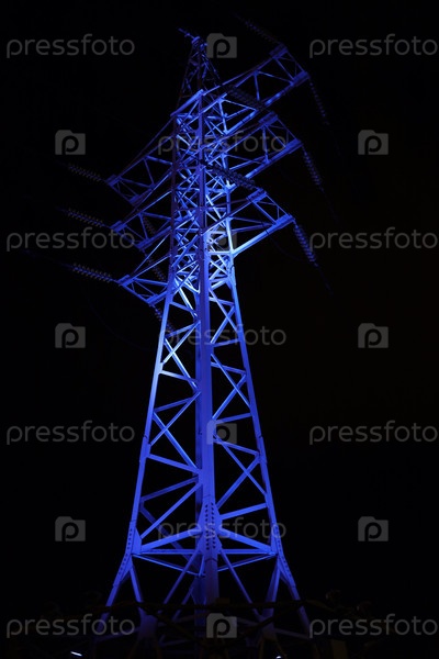 Синяя подсветка опоры линии электропередачи