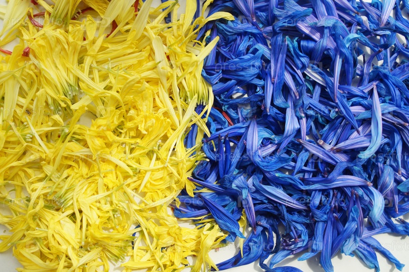 Лепестки синей и желтой хризантемы в две полоски