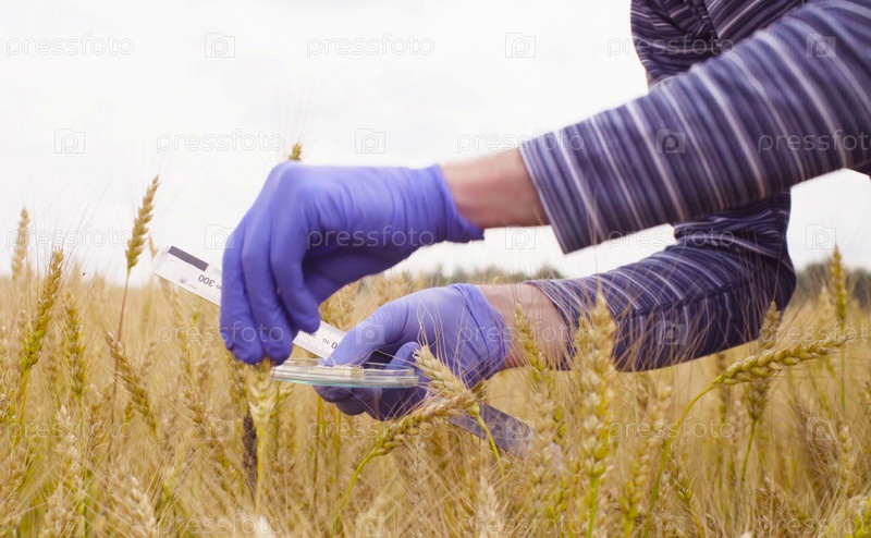 Рука ученого-эколога, берущего образцы зерна