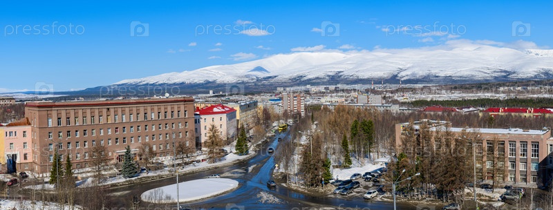Весенняя панорама города Апатиты. Мурманская область, Россия