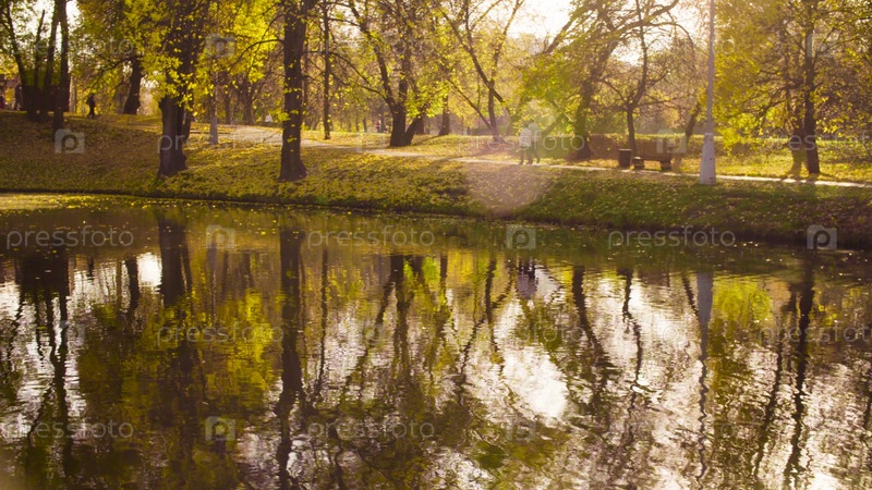 Осенний пейзаж, озеро в парке. Осенний сезон