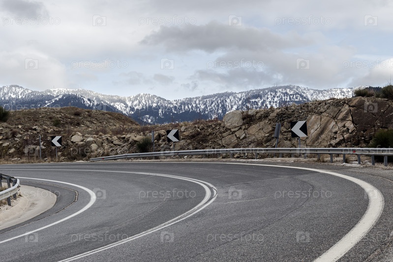 Зима в горах (регион Эпир, Греция) и проселочная дорога в зимний день