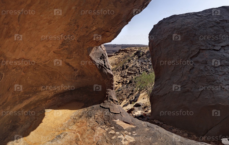 Африка, Мавритания. Гигантские обломки скал вулканического происхождения на скалистом плато природного парка Агроур на юго-западной окраине пустыни Сахара