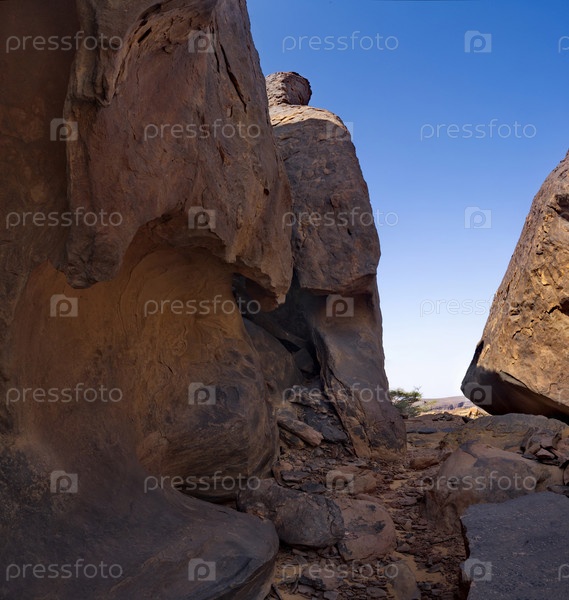 Африка, Мавритания. Гигантские обломки скал вулканического происхождения на скалистом плато природного парка Агроур на юго-западной окраине пустыни Сахара
