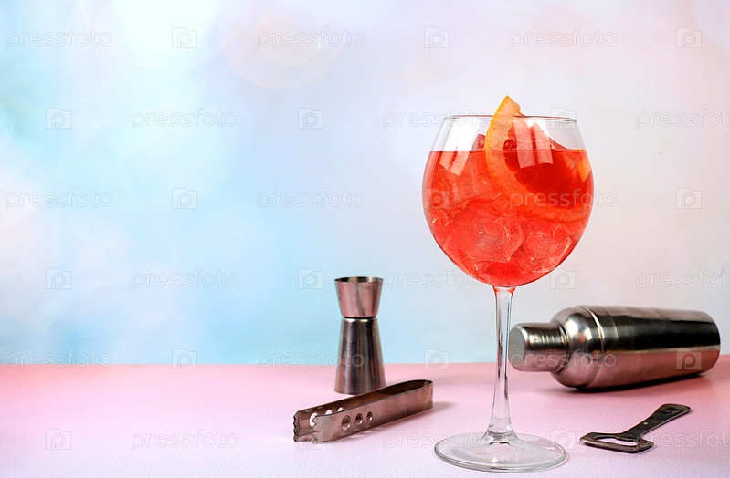 Праздничный алкогольный коктейль Aperol spritz в стаканах на ярком фоне, концепция бара и канун Нового года, спиртные напитки на вечеринке, реклама ресторана,