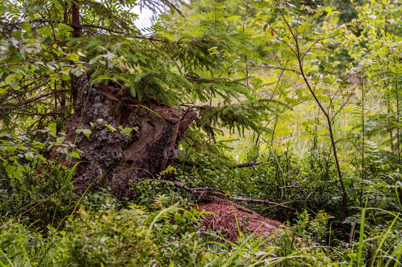 Лес. муравейник возле старого ствола в лесу. лес. An anthill near an old stump in the forest