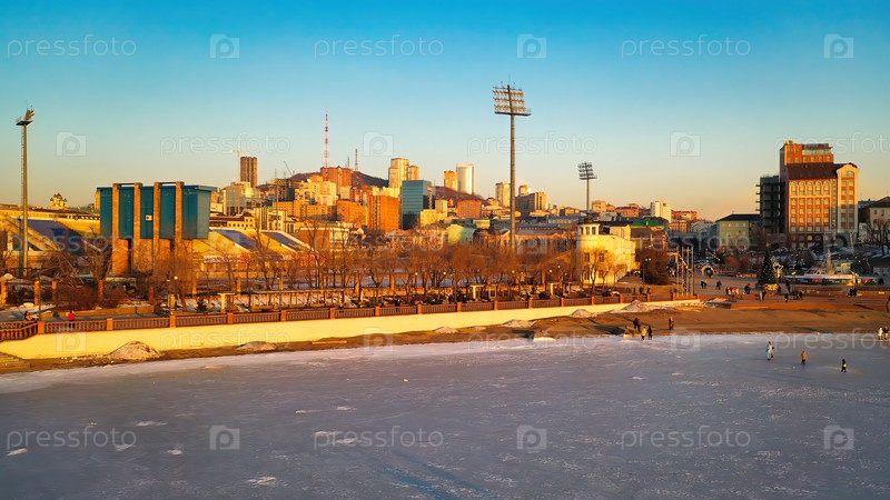 Вид сверху на зимний Владивосток, Россия