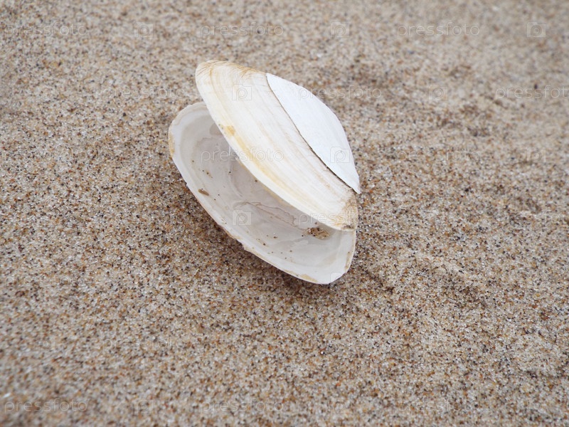 Ракушка с открытыми створками на песчаном пляже