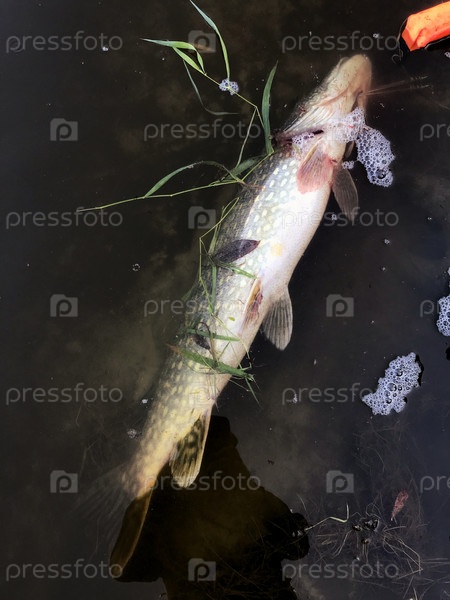 Щука на кукане. Речная рыба. Пресноводная рыбалка