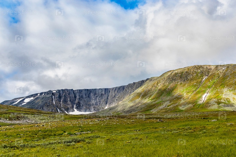 Долина и горы на Приполярном Урале в летний день