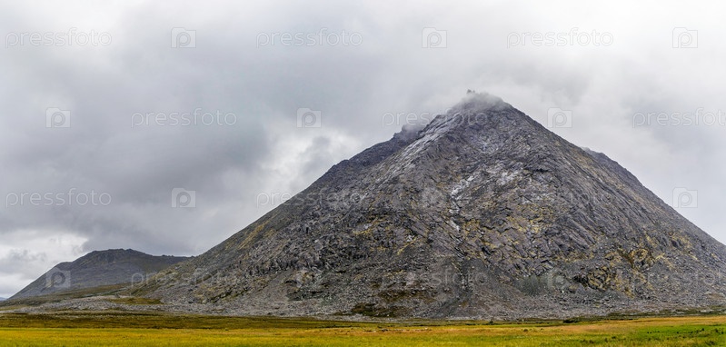 Высокая скалистая гора с облаками на вершине