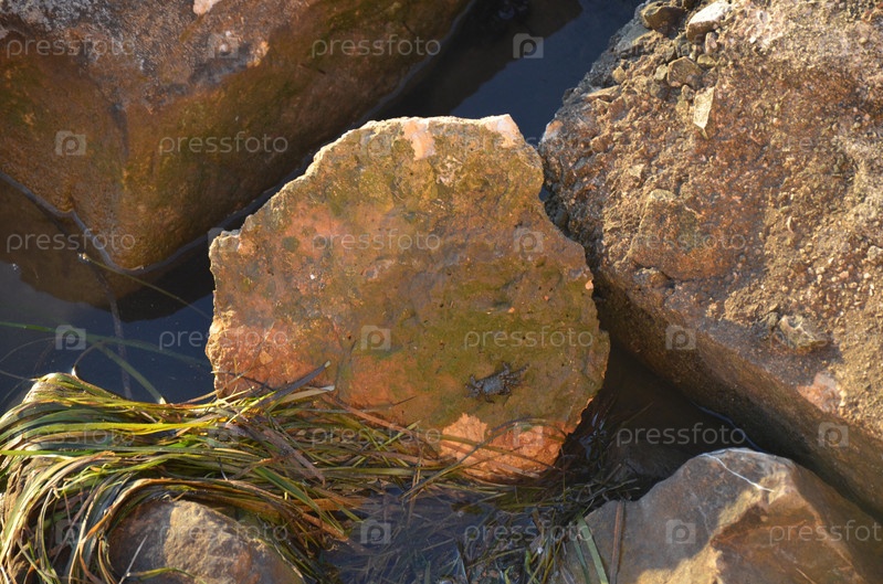 Маленькие крабы сидят на больших камнях