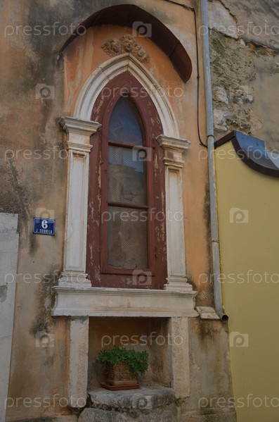Красивое старинное деревянное окно в историческом здании в венецианском стиле