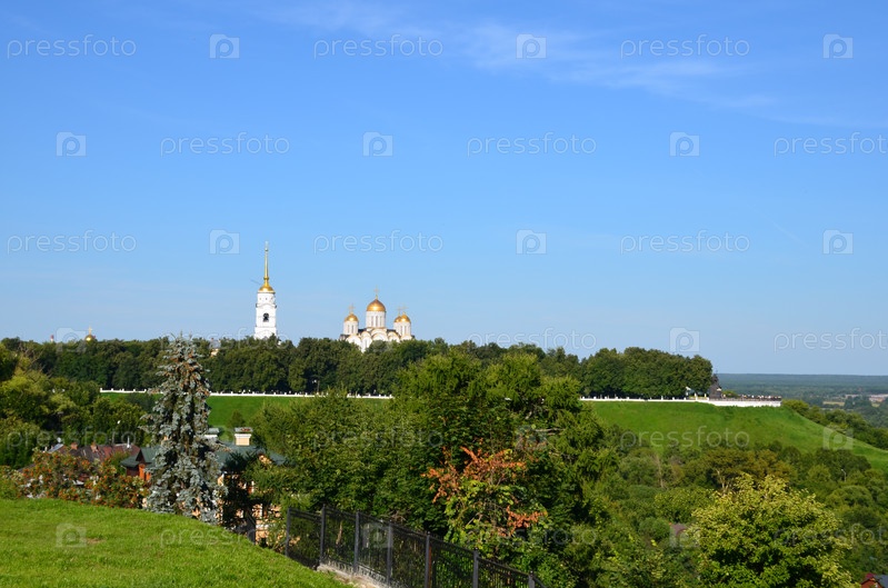 Успенский собор (Свято-Успенский кафедральный собор) в ясный солнечный день в городе Владимир, входящем в Золотое кольцо России