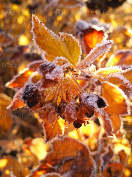 Ветка боярышника в морозное утро