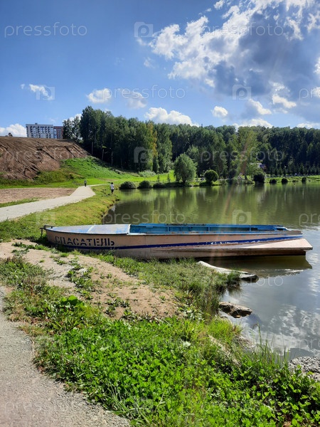 Лодочка на озере. Россия г. Новосибирск, Наукоград Кольцово. сентябрь 2023г