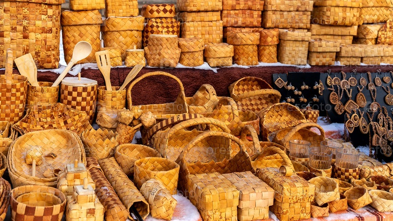 Изделия из бересты. Уличная торговля. Народные промыслы